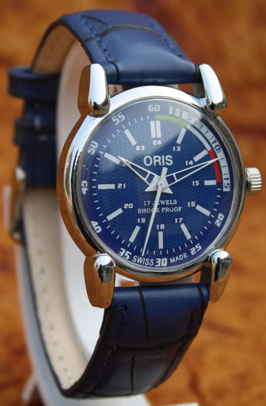 Blue Faux Leather Watch ORIS 17 Jewels FHF ST96 Mechanical Hand Winding Swiss Made