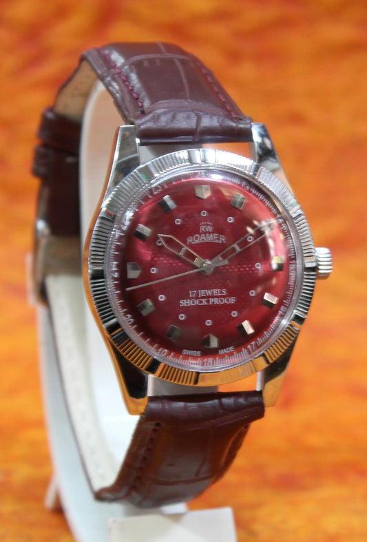 Red Dial Watch Roamer Vintage 17 Jewels FHF ST96 Mechanical Hand Winding Swiss Made