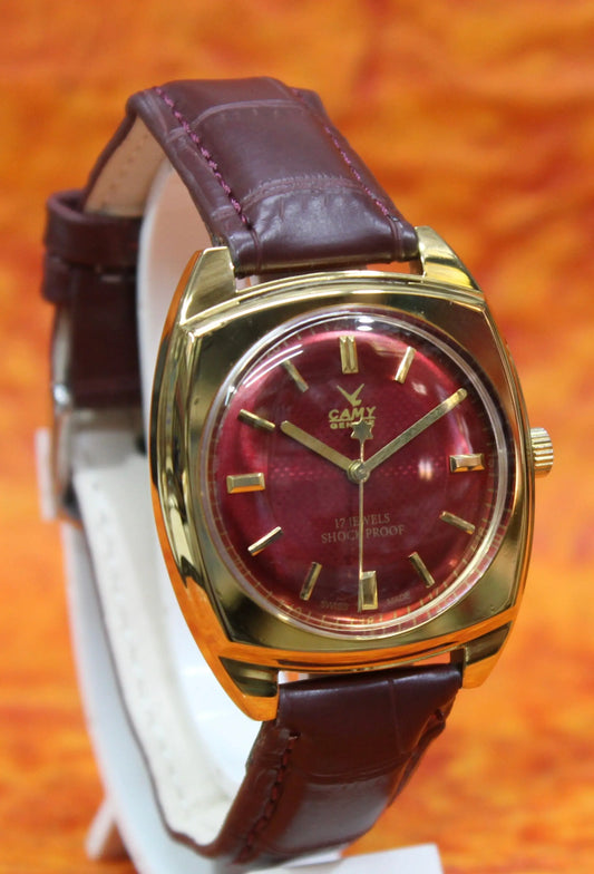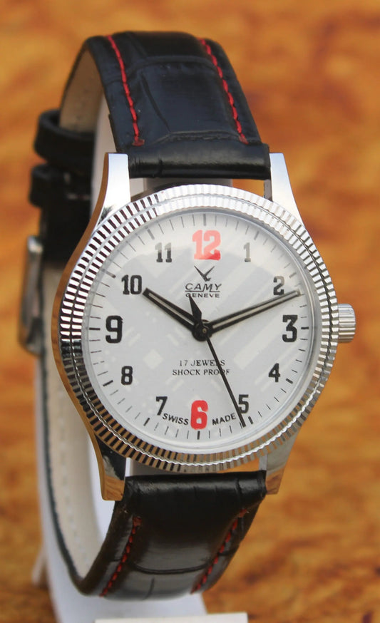 Camy Geneva Wristwatch Vintage 17 Jewels FHF ST96 Mechanical Hand Winding Swiss Made Red Dial