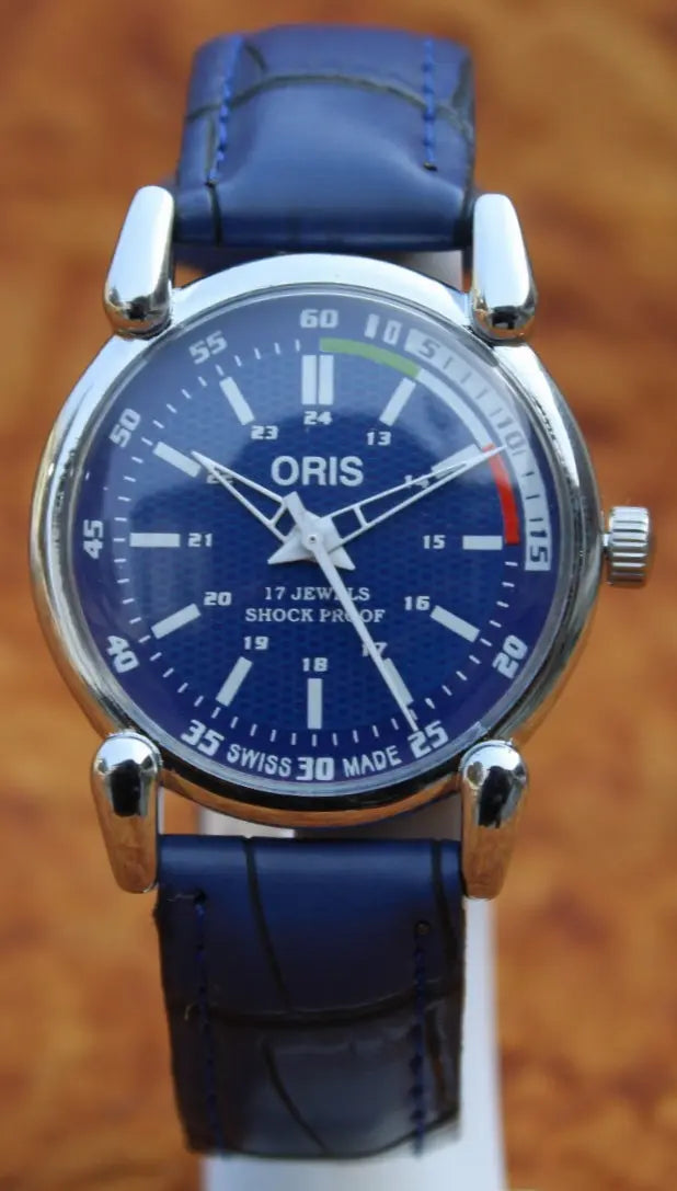 Blue Faux Leather Watch - ORIS 17 Jewels ST96 Swiss Made